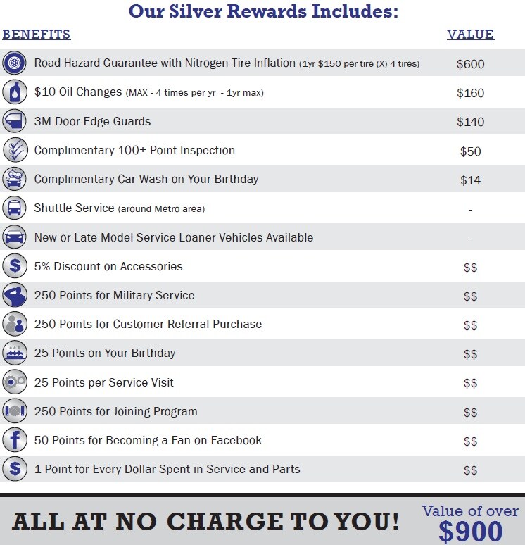 Discover the Many Perks of Our Silver Rewards Program, a Value of over $900, at NO CHARGE to You!Â